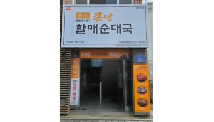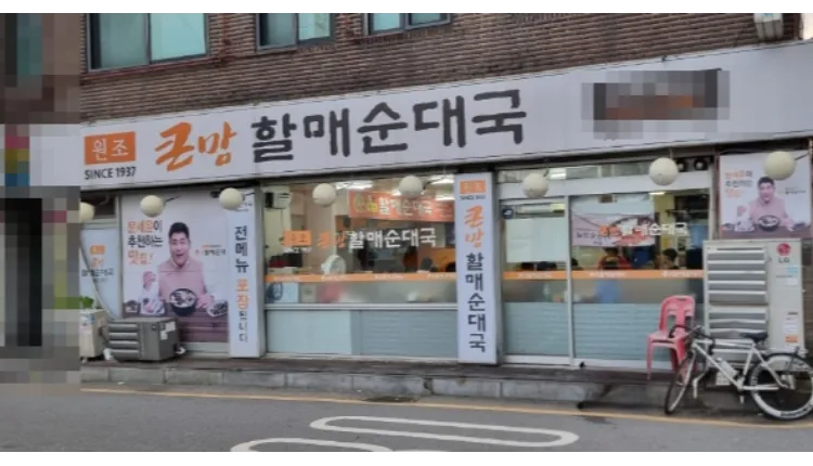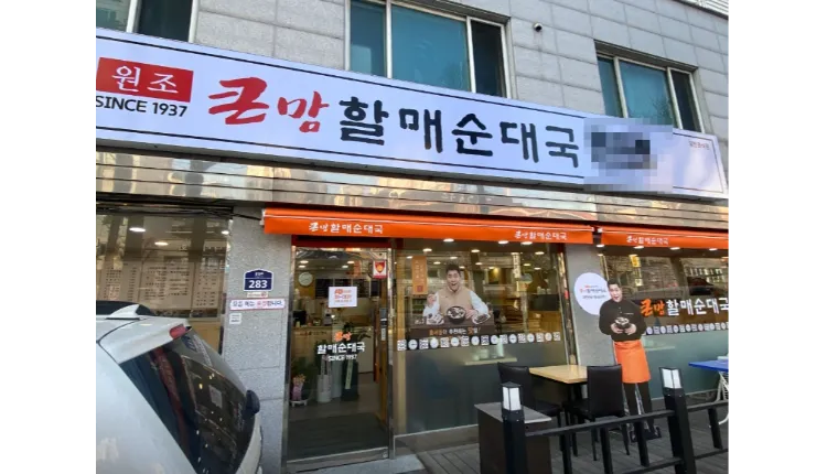 [은평구] 아파트 근처 대로변에 위치한 프랜차이즈 순대국밥 전문점입니다.
